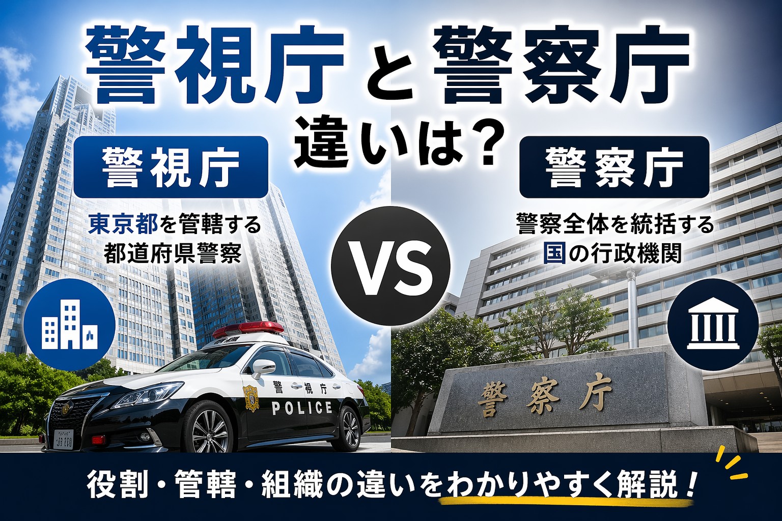 しかし、ご安心ください。この記事を読めば、そんなモヤモヤとした疑問が 1発でスッキリ解決します! 警視庁と警察庁、それぞれの役割、 管轄、そして「偉い」という視点から見たその関係性まで、徹底的にわかりやすく解 説します。