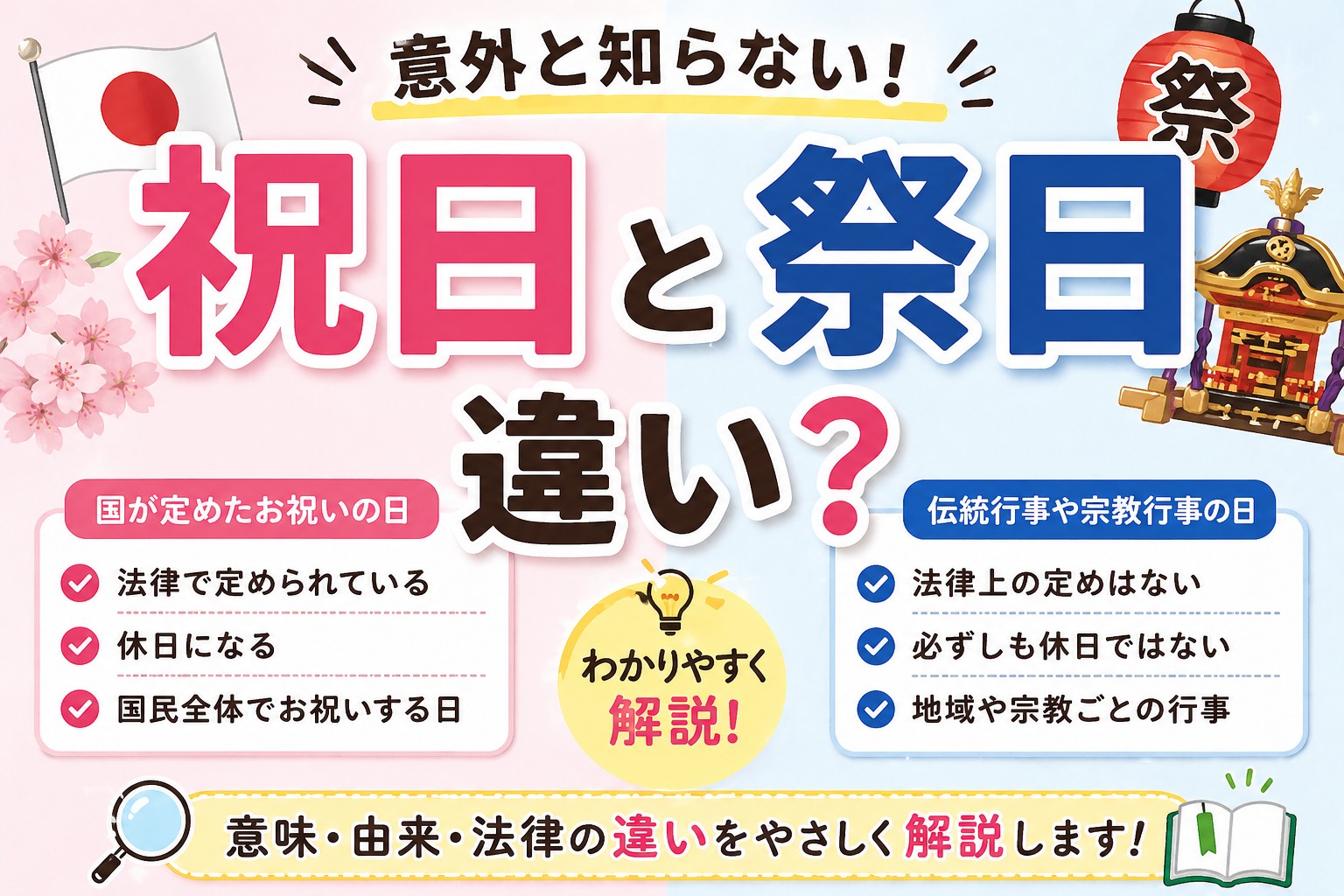 実は、この「祝日」と「祭日」には、たった1つの決定的な差 が存在します。そして、その差を一度理解してしまえば、あなたはもう二 度とこの二つの言葉で迷うことはありません。